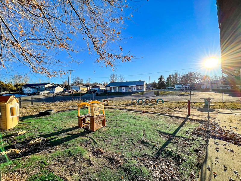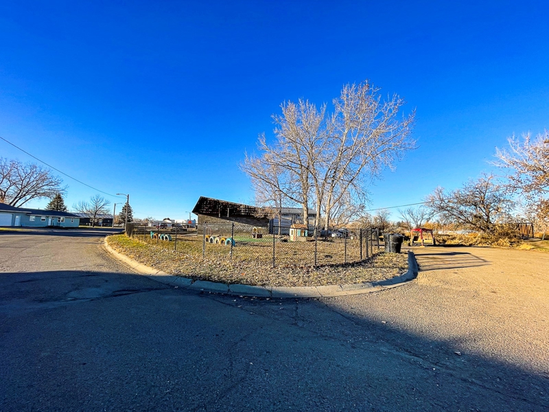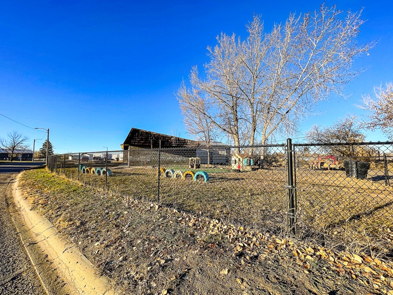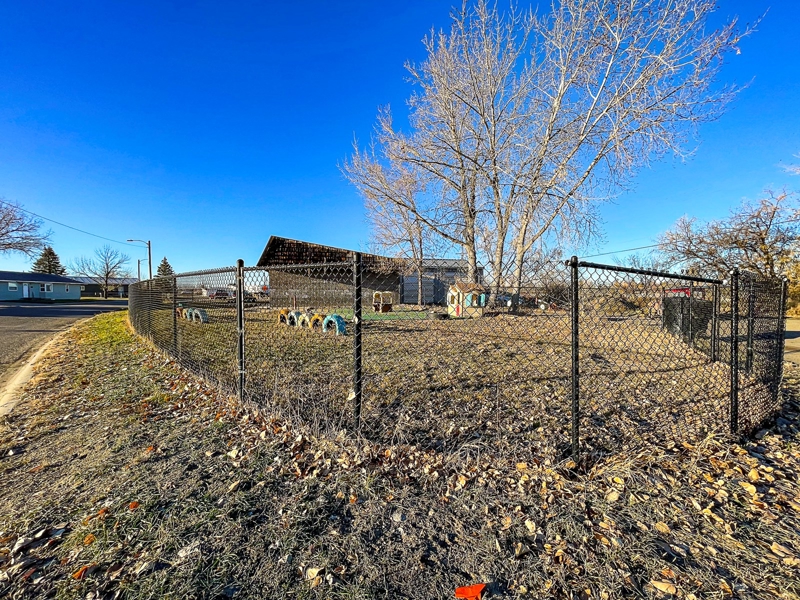 Looking for a large commercial space in Malta MT? Check out this 1,595+/- square feet commercial building (1978) with 24’ x 32’ steel shop (1980.) Updates in recent years include a new furnace (2021), water heater, carpet, interior paint, flooring, kitchen remodel, black chain link fence, and metal roof. The large kitchen has been updated to accommodate cooking for large groups, it is a spacious and versatile layout giving you endless options for use. The open design kitchen adds functionality, making it a joy to cook while socializing. This one-level property is perfect for buyers looking for a comfortable and convenient space. There is plenty of room for storage, work, relaxation, and entertainment. The main floor consists of an owner’s office/bonus room, a utility room with laundry hookups, a half bathroom, a front entry room, and a kitchen that opens into an oversized open room with a “tree house.” This property was most recently utilized as a daycare center, but the options for use are endless. High-speed internet is in place in the building.